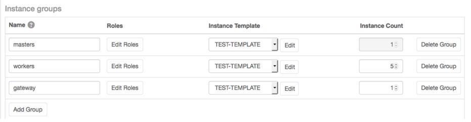 - In the Instance groups area, create a new template for the groups or for each group and the number of instances you want.