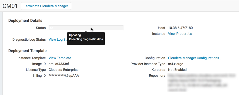 While diagnostic data collection is in progress, the status of the deployment or cluster changes from its current state to Updating: Collecting diagnostic