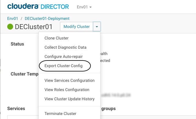 You can use the exported configuration file as is, or edit it as desired to create new clusters.