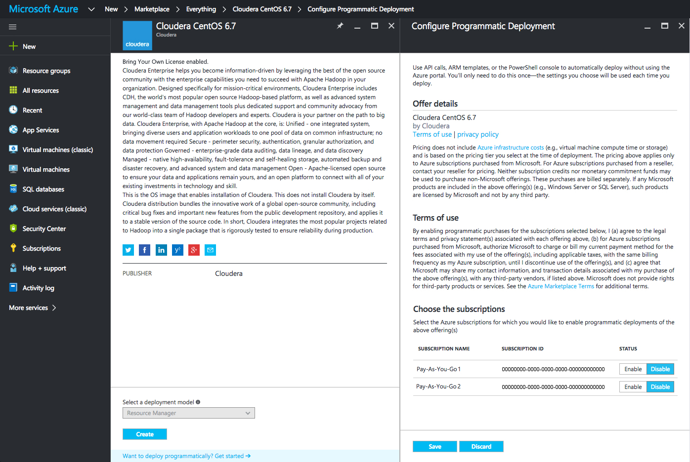 By default, the Altus Director Azure plugin uses the Cloudera-certified CentOS 6 image. For detailed steps allowing programmatic deployment of Azure VM images, see aWorking with Marketplace Images on Azure Resource Manager.