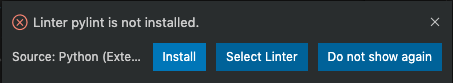 prompted to install pylint Linter.