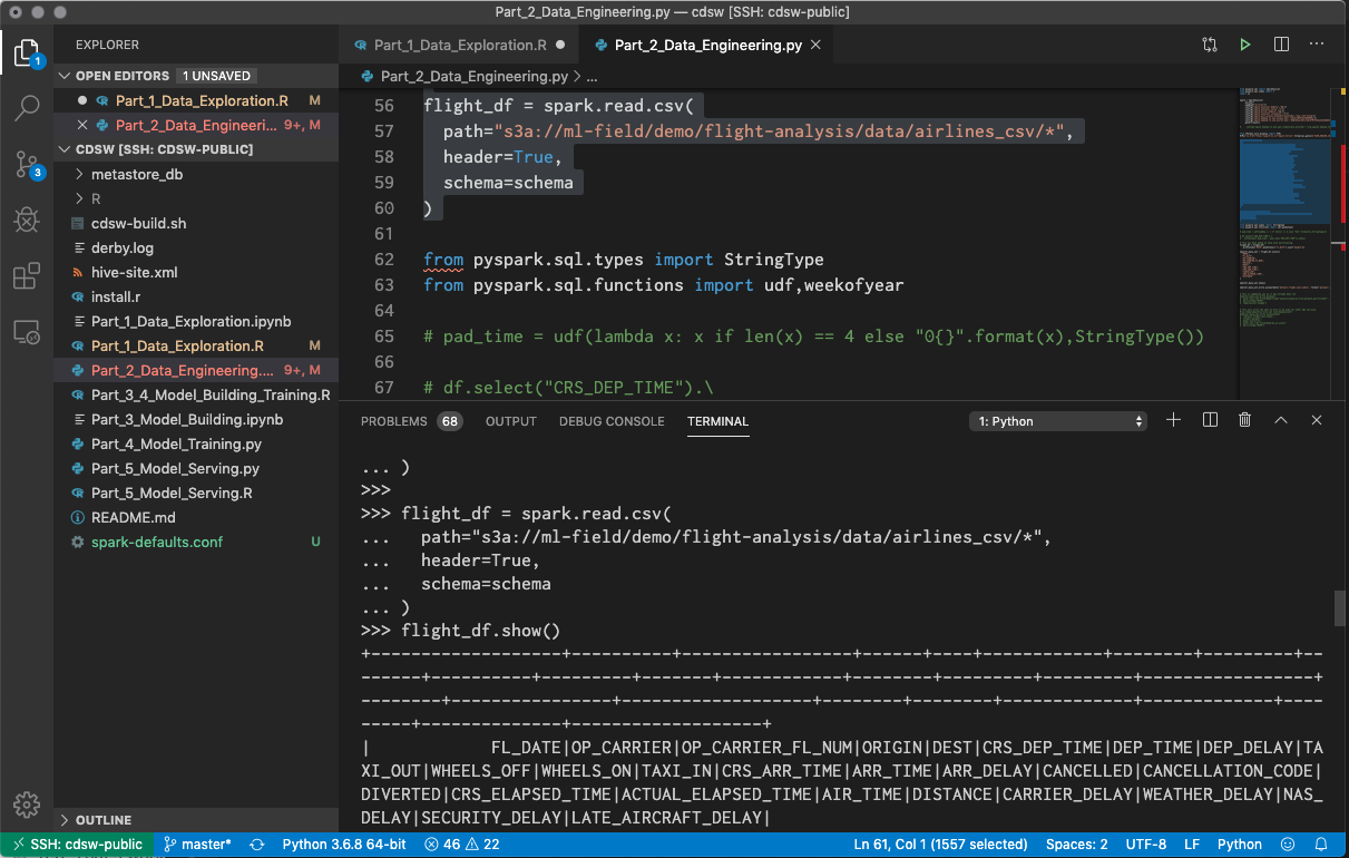 important to note that this is a remote terminal, running on an engine in Cloudera Machine Learning. It's the same as if you launched a terminal