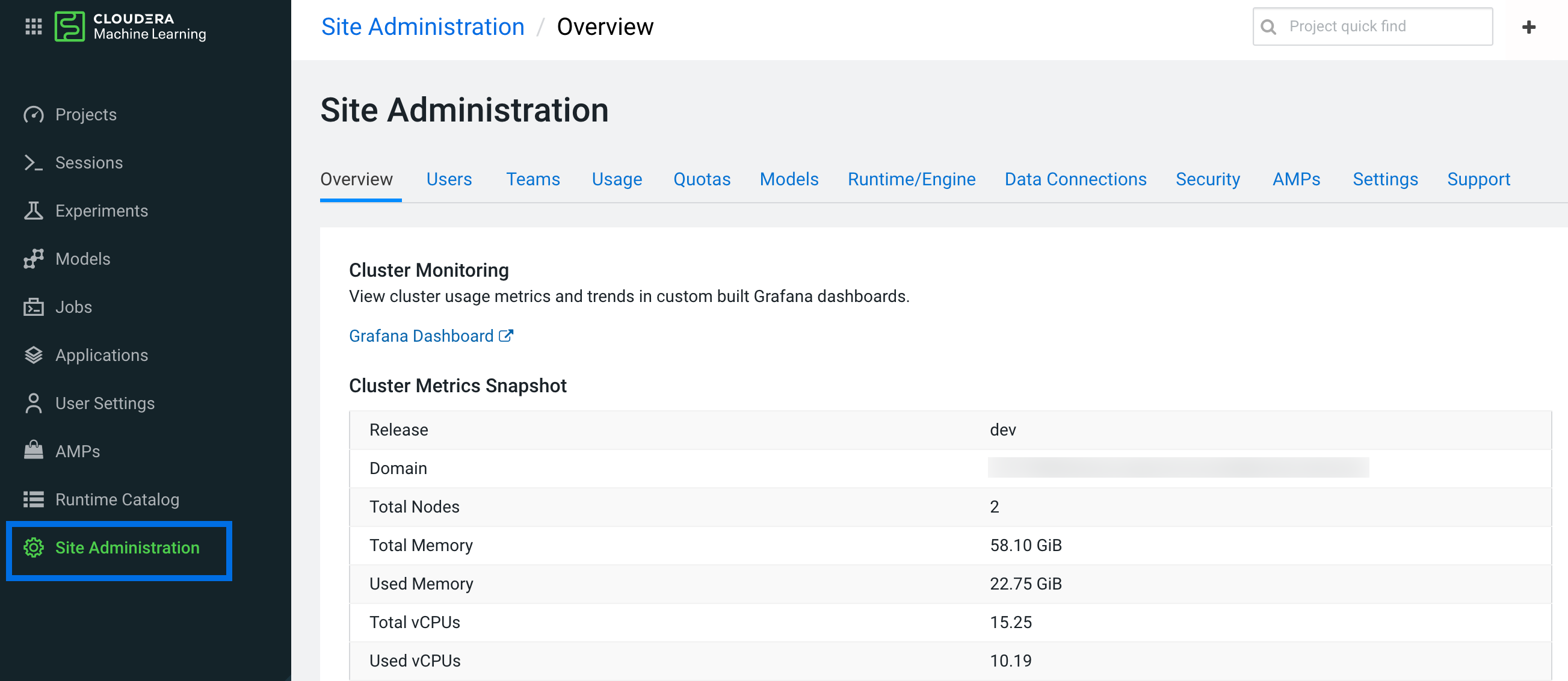 - Go to the Cloudera Machine Learning web application and log in as a site administrator.