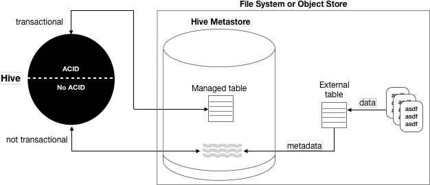 You use an external table, which is a table that Hive does not manage, to import data from a file on a file system into Hive. In contrast to the Hive managed table, an external table keeps its data outside the Hive metastore. Hive metastore stores only the schema metadata of the external table. Hive does not manage, or restrict access, to the actual external data.
