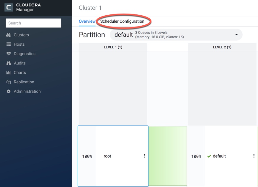 In Cloudera Manager, select Clusters > YARN Queue Manager UI