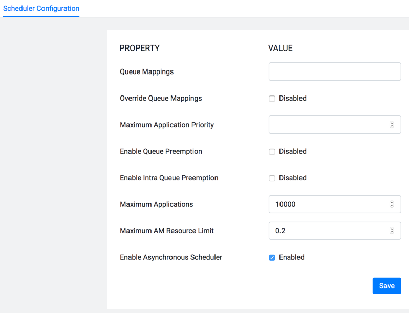 You can configure the scheduler properties to define the behaviour of all the queues. All parent and children queues inherit the properties set using the Scheduler Properties.