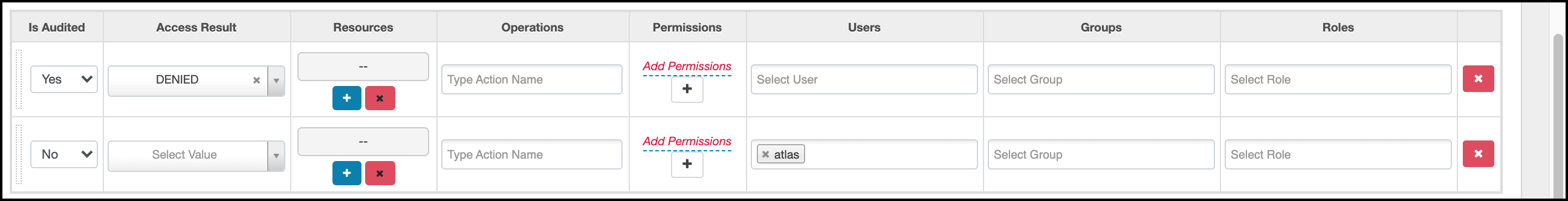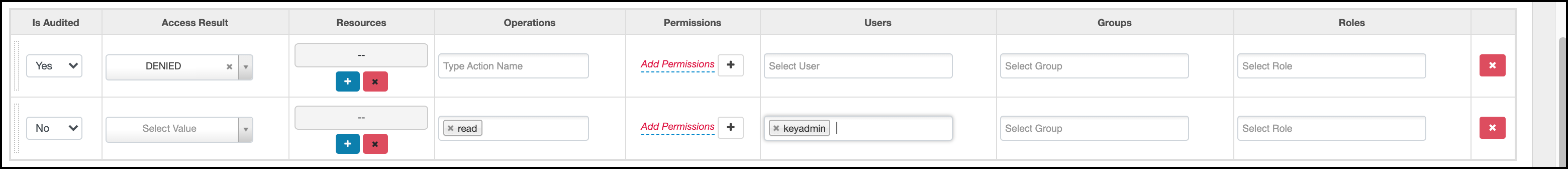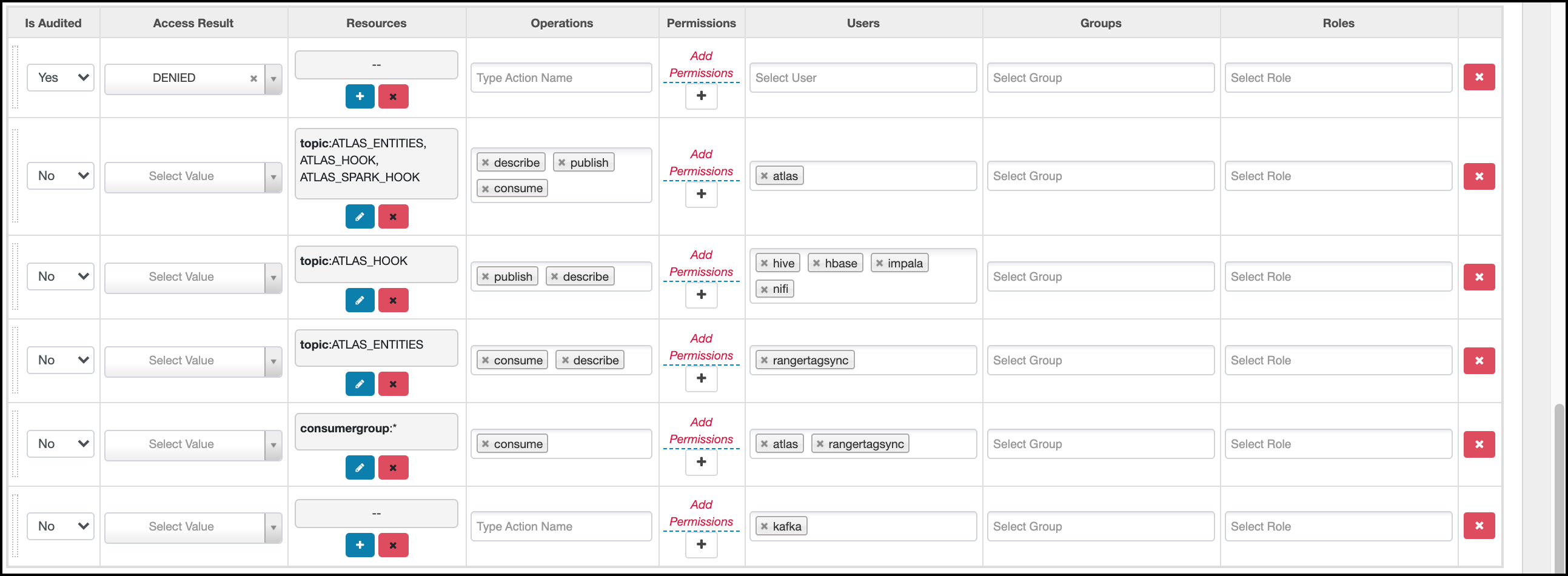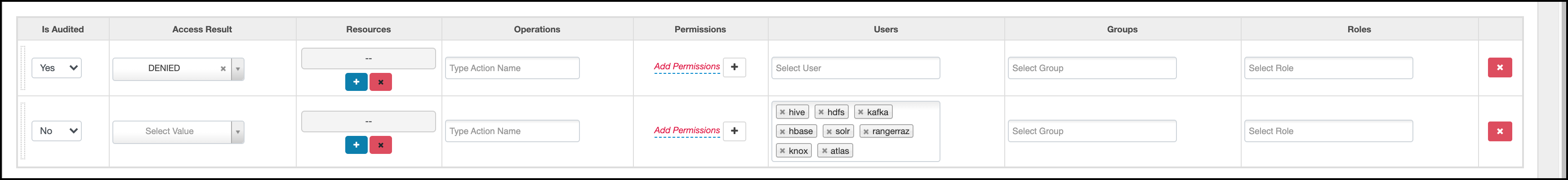 For example, in HDFS service select read, write, execute, or All