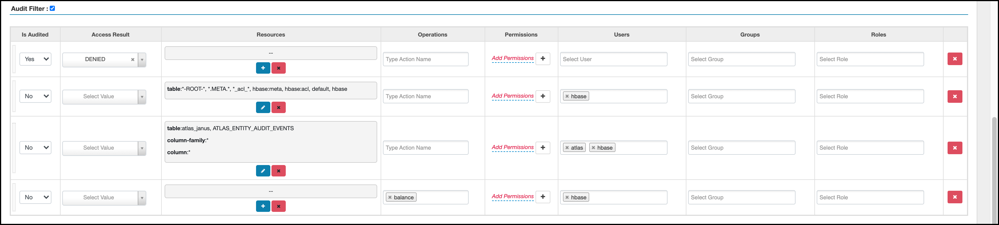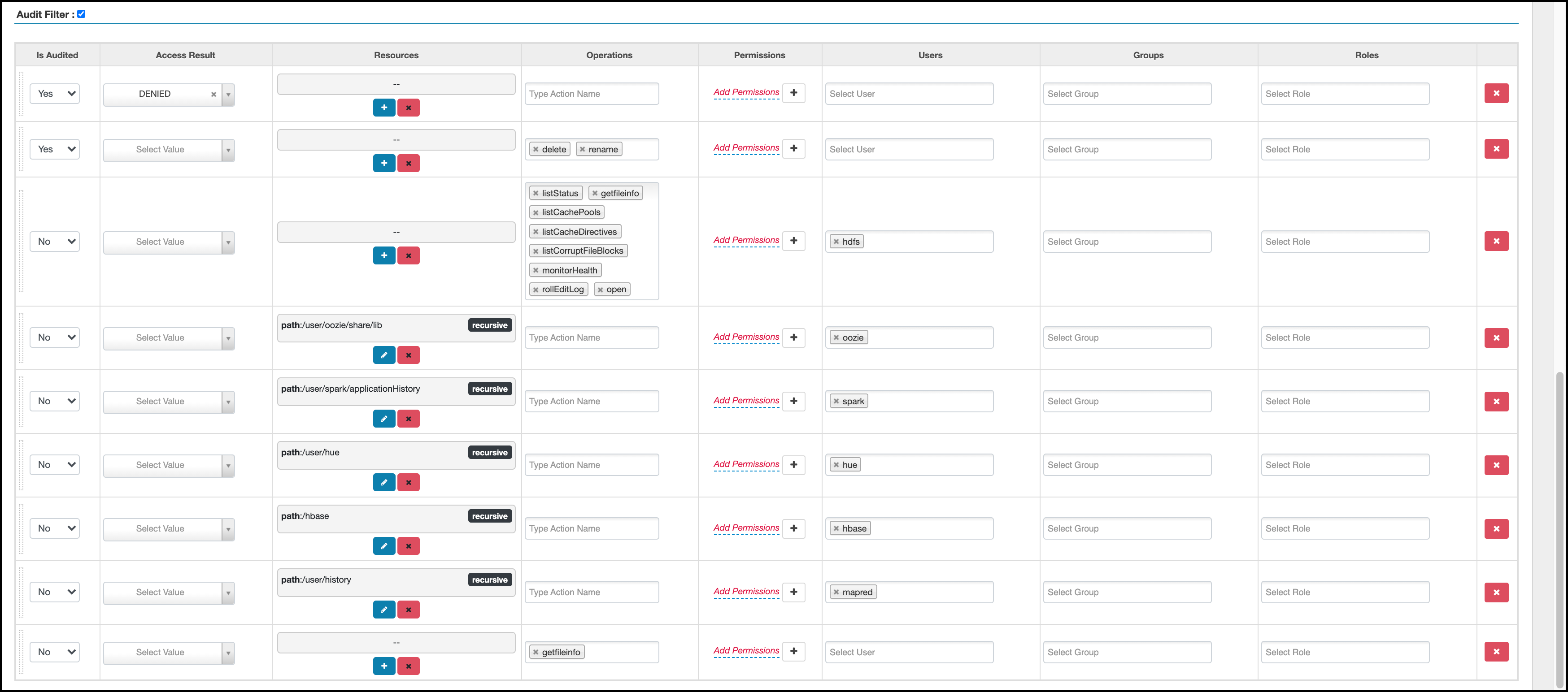 Ranger audit filter policy configuration