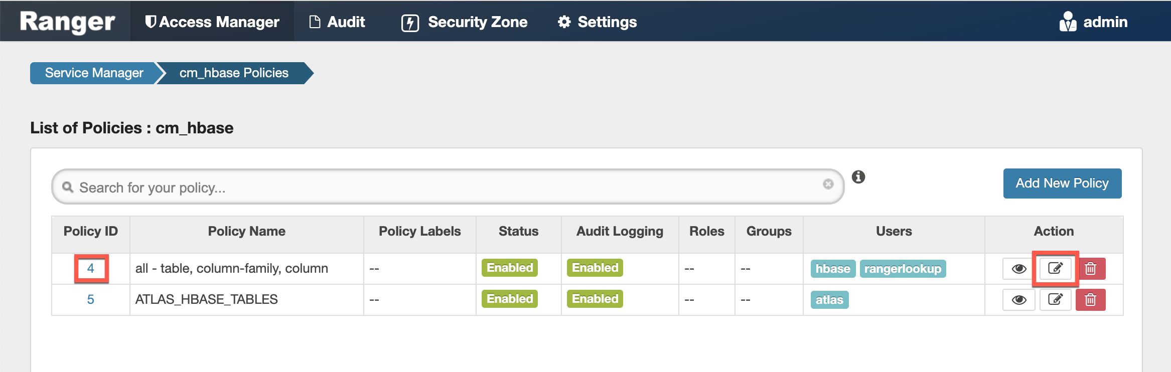 - admin, rangerlookup – Allow