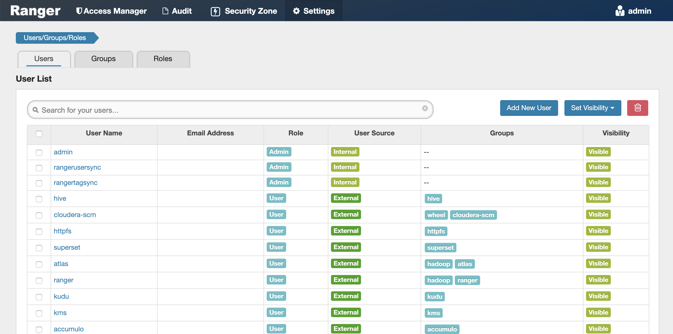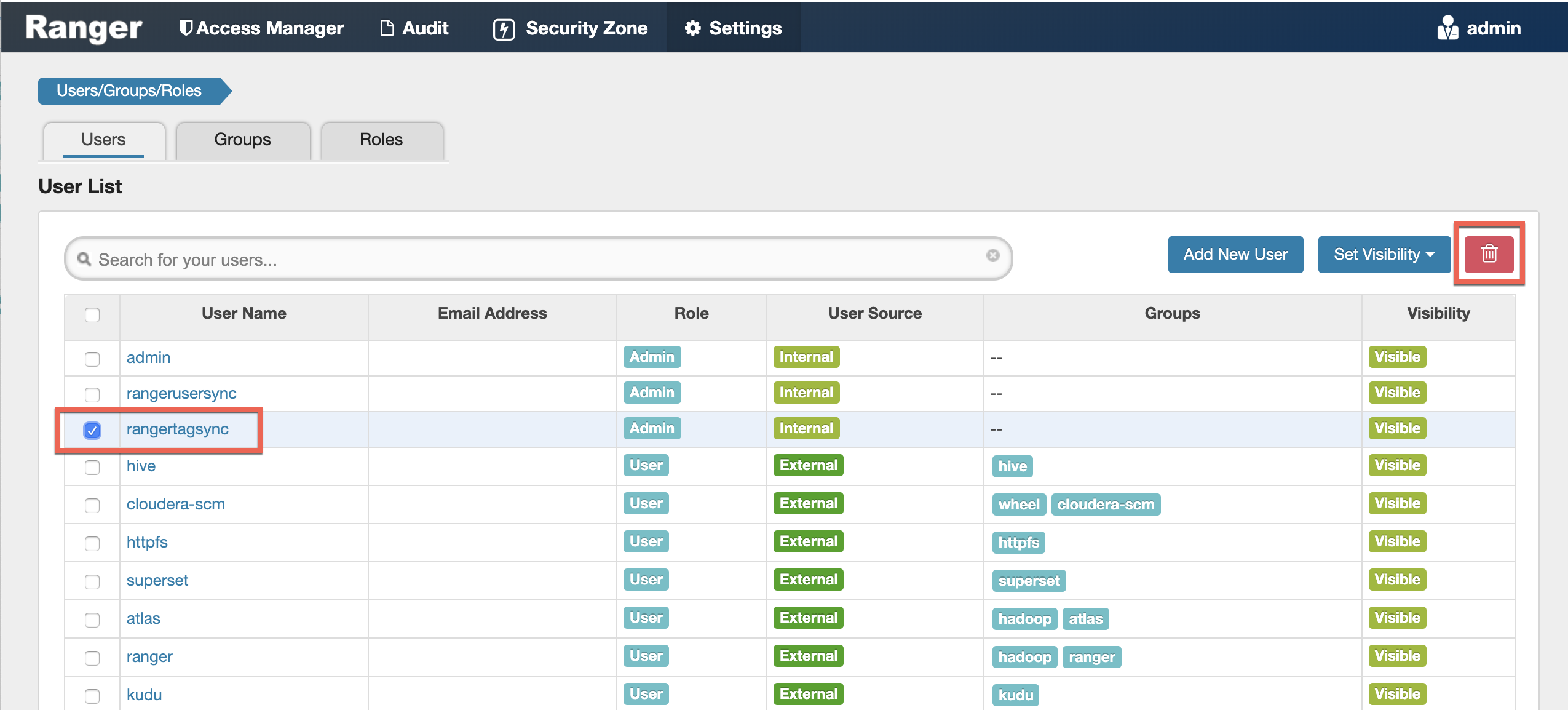 Only users with the "admin" role can delete a user.- Select Settings > Users/Groups.