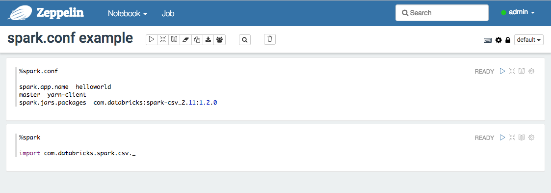 In the following example, zeppelin_custom_note_conf.png to customize the Spark interpreter in a Note.