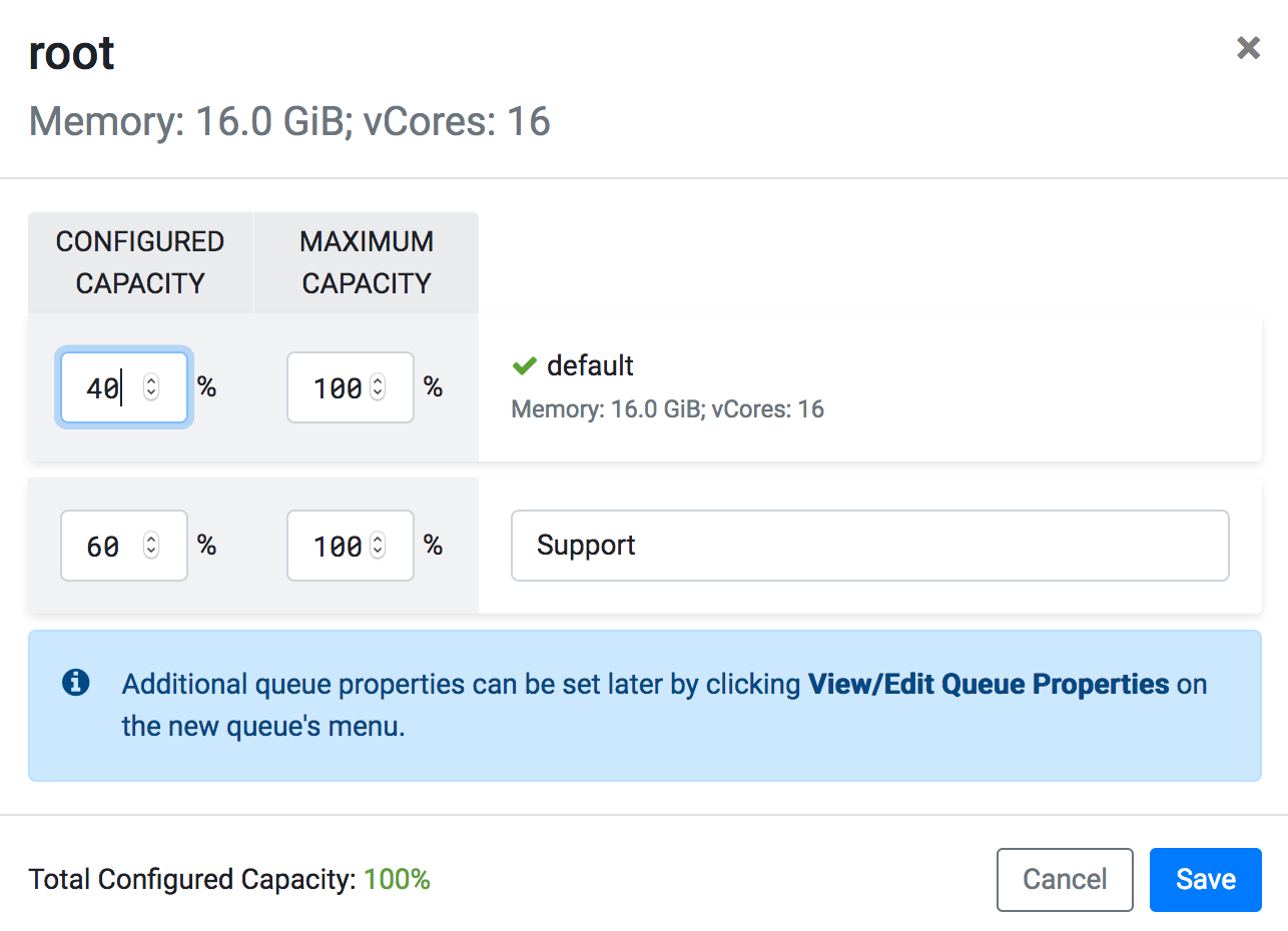 Manager UI. The Capacity Scheduler has a predefined queue called root. All queues in the system