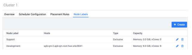 Click the Node Labels tab. A list of existing partitions (node labels) is displayed.