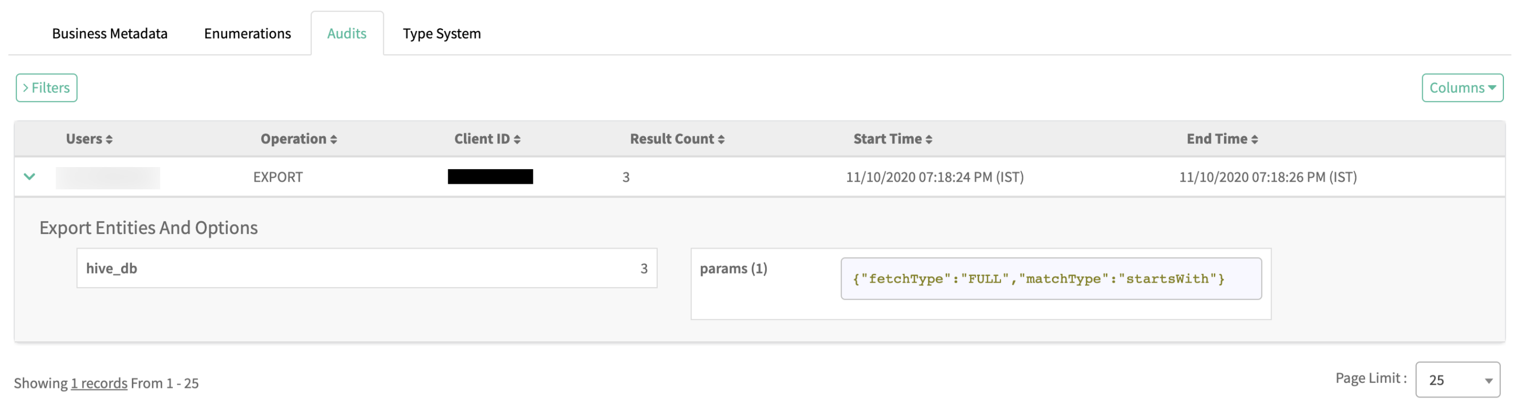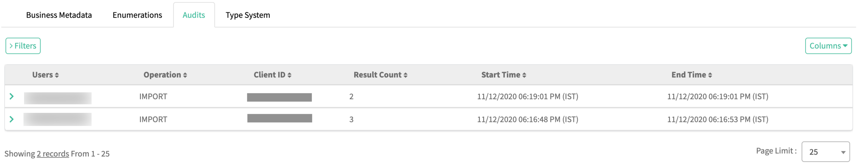 Each import audit entry provides information about the total number of entities imported, along with the number of entities imported with each Type Definition.