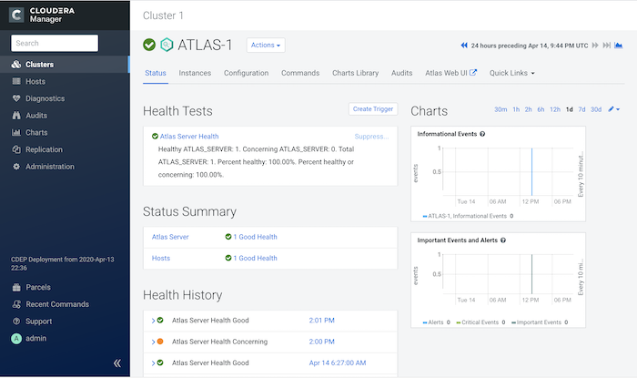 Atlas collects metadata for services in a given cluster managed by Cloudera Manager. If Cloudera Manager manages more than one cluster, you may have multiple instances of Atlas, one in each cluster. When you check the health of Atlas or configure its properties, make sure you are working in the correct cluster.