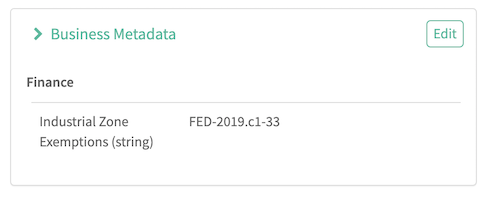 You can update the value of Business Metadata attributes from an entity by clicking Edit, then entering a new value. Be sure to click Save.