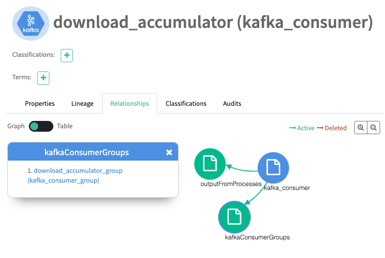 Atlas shows the entities related to this entity in the Relationships tab in the Dashboard.