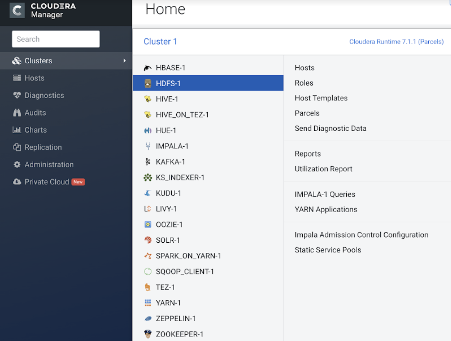 In Cloudera Manager, select Clusters >