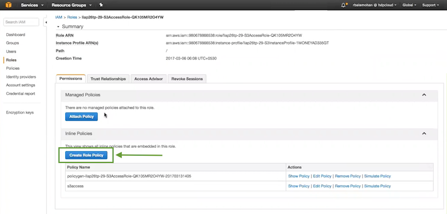 Now the policy will be attached to your IAM role and your cluster will be able to talk to DynamoDB, including creating a table for S3 metadata when S3Guard is configured.