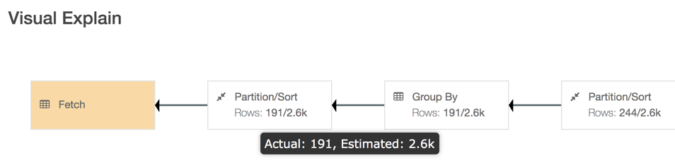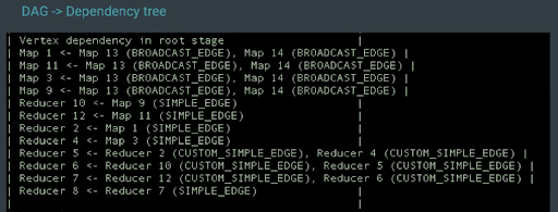 You can use this information to see what part of the query resulted in how many vertices and task attempts, such as the number of keys in the GROUP BY clause, or a JOIN condition.