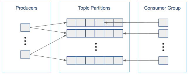 NPis the number of required producers determined by calculating:TT/TPNCis the number of required consumers determined by calculating:TT/TCTTis the total expected throughput for our systemTPis the max throughput of a single producer to a single partitionTCis the max throughput of a single consumer from a single partition
