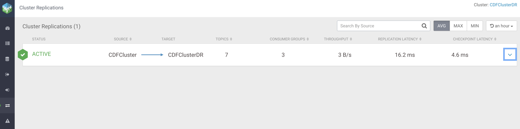 Perform the following steps to view the details of a cluster replication: