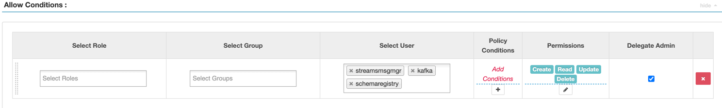 With a custom policy you can specify the Schema Registry entity and the type of access the user requires.