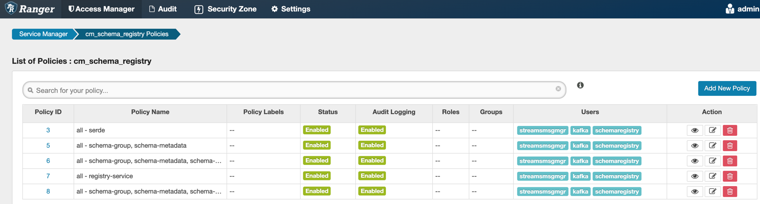 the following pre-defined access policies for Schema Registry and you can specify the type of
