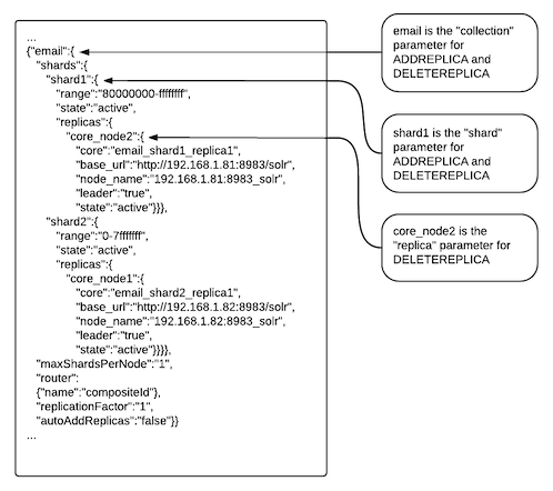 nodeparameter ensures the new replica is created on the intended host. If no host is specified, Solr selects a host with relatively fewer replicas. - For deleting replicas, the request is routed to the host that hosts the replica to be deleted.