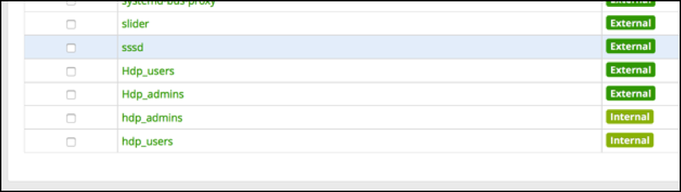 Most HDP components get the group information for a user via the SSSD daemon. When asked for the groups the user ‘d.threpe’ belongs to we get: