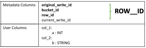 struct that consists of the following information: - The write ID that maps to the transaction that created the row