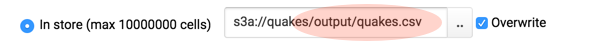 s3a://quakes/output/quakes.csv.