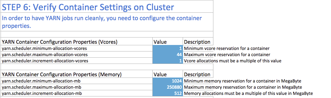 The minimum number of vcores should be 1. When additional vcores are required, adding 1 at a time should result in the most efficient allocation. Set the maximum number of vcore reservations to the size of the node.