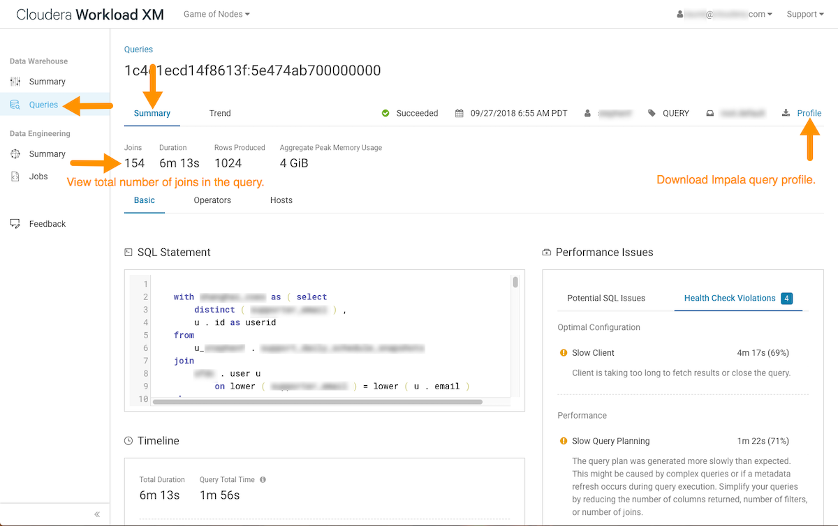 for Impala queries and view the total number of JOINS performed for a specific query: