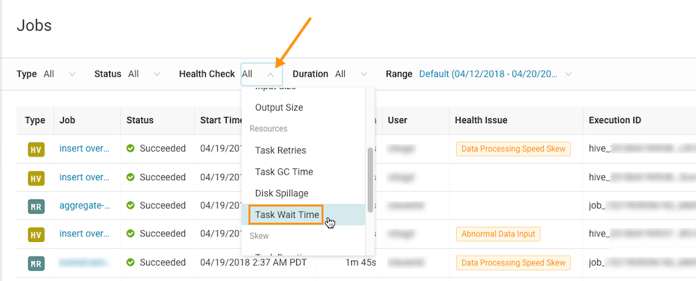 For example, as shown in the following image, the long wait time occurred in the Map Stage of the job process due to insufficient resources: