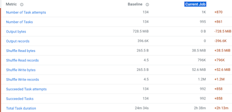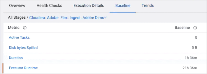 Workload XM enables you to identify and address abnormal or degraded performance problems by establishing baselines from health issues that also enable a performance comparison of your workloads. The Workload XM baseline metrics measure the current performance of a job against the average performance of previous runs. They use performance data from 30 of the most recent runs of a job and require a minimum of three runs. The baseline comparisons start with the fourth run of a job.