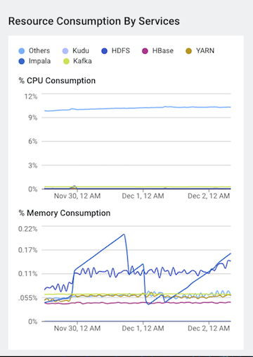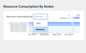 CPU and memory consumption for each node in the cluster. Hover your mouse over the